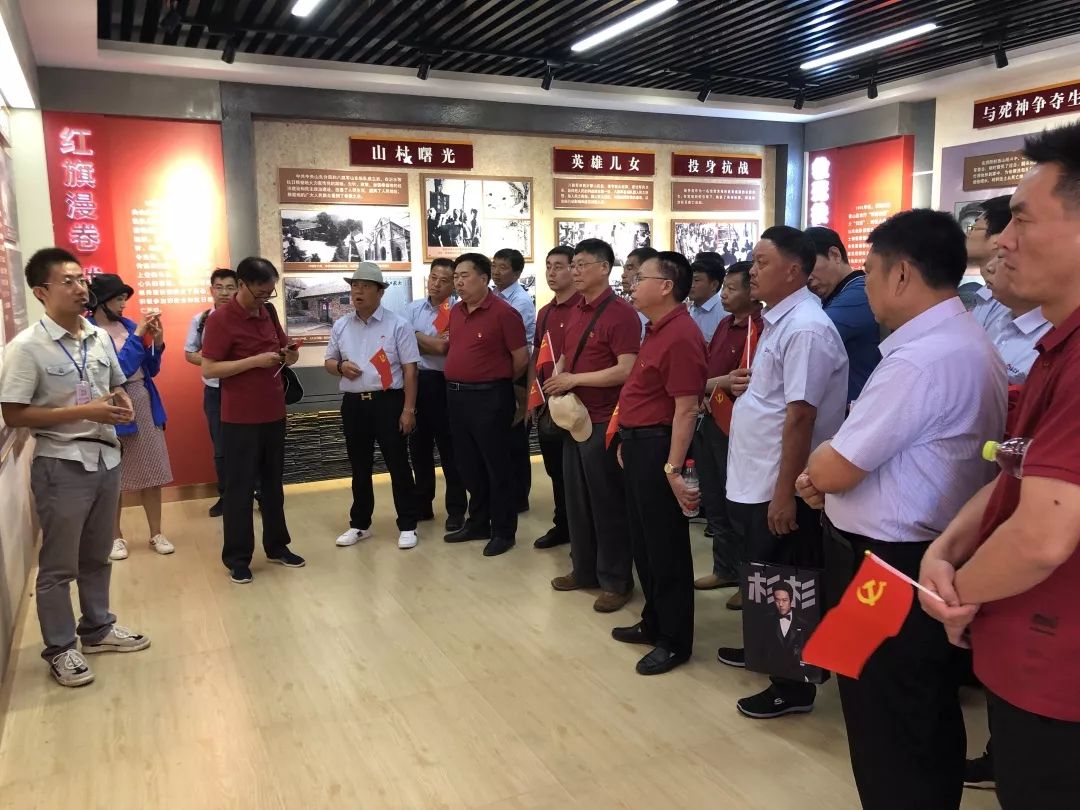 紀(jì)念館前,于書記帶領(lǐng)黨員同志們面對鮮紅的黨旗,莊嚴(yán)地舉起右手,重溫入黨誓詞,夯實信仰根基。