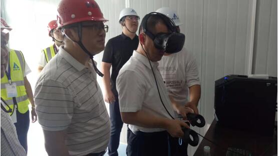 7月24日,如皋市委常委、宣傳部部長高峰、市教育局相關(guān)科室負責人,在集團總裁沈衛(wèi)東的陪同下,頂著烈日深入施工現(xiàn)場,查看并詳細了解學(xué)校教學(xué)樓、餐廳、報告廳等各個工程項目施工進度情況,聽取沈衛(wèi)東對工程進展的詳細匯報,觀看項目BIM視頻匯報。高部長建議學(xué)校外觀顏色設(shè)計要考慮與周圍建筑環(huán)境的協(xié)調(diào)性。隨后,高部長親自操作安全VR設(shè)備并詢問交底情況,他對安全VR體驗非常認可,要求作為我市第一個建立VR體驗館的工地,要充分利用VR體驗館,讓每個工人都能深刻了解安全事故的危害,提高安全警惕性,從而更好地推動安全生產(chǎn),并建議設(shè)立開放日,讓全市建筑企業(yè)觀摩。
