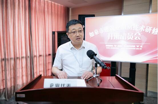 集團(tuán)總裁沈衛(wèi)東作為企業(yè)代表上臺(tái)發(fā)言,與大家分享集團(tuán)發(fā)展、推行BIM技術(shù)的歷程,以市政和環(huán)保項(xiàng)目為切入口,努力實(shí)現(xiàn)BIM技術(shù)彎道超車。通過業(yè)務(wù)轉(zhuǎn)型、加強(qiáng)人才培養(yǎng)、打造學(xué)習(xí)強(qiáng)企,集團(tuán)將不辱使命,永立龍頭,與大家共同前行!他堅(jiān)信如皋建筑企業(yè)一定能抓好契機(jī),奮發(fā)圖強(qiáng),共同為如皋建筑業(yè)的騰飛作出貢獻(xiàn)!