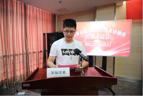 源豐建設(shè)BIM負(fù)責(zé)人劉肖肖作為學(xué)員代表發(fā)言,與大家分享之前參加南通六建BIM培訓(xùn)中心軟件學(xué)習(xí)和應(yīng)用的心得體會(huì),他相信在社會(huì)各級(jí)領(lǐng)導(dǎo)的支持幫助下、在所有建設(shè)者的不懈努力下,BIM必將星火燎原!同時(shí)他代表學(xué)員表態(tài):認(rèn)真學(xué)習(xí),以優(yōu)異的成績(jī)向祖國(guó)建國(guó)70周年獻(xiàn)禮!